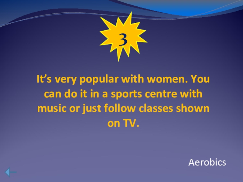 3. Rhytmical gymnastics. It’s very popular with women. You can do it in a sports centre with music or just follow classes shown on TV