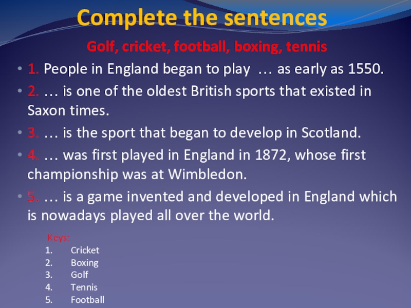 5. … is a game invented and developed in England which is nowadays played all over the world.