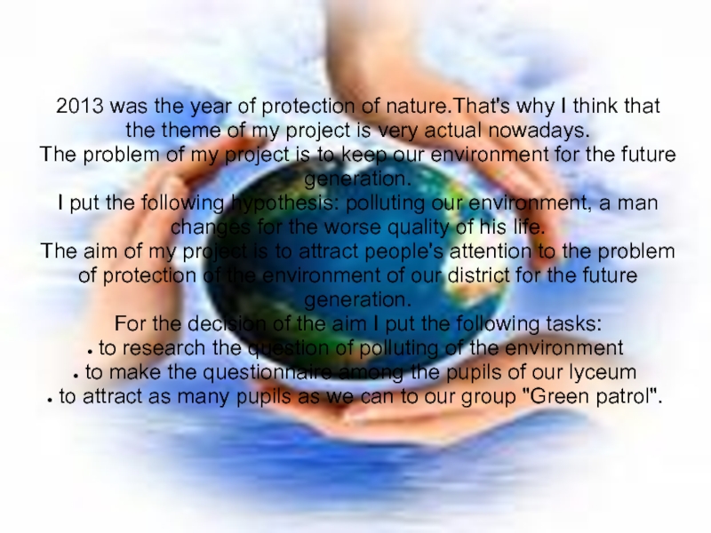 2013 was the year of protection of nature.That's why I think that the theme of my project