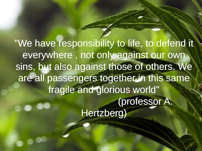 Слайд 4"We have responsibility to life, to defend it everywhere , not