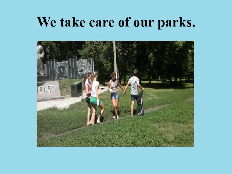 Слайд 16We take care of our parks.