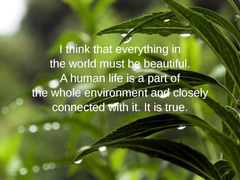 I think that everything inthe world must be beautiful. A human life is a part ofthe whole