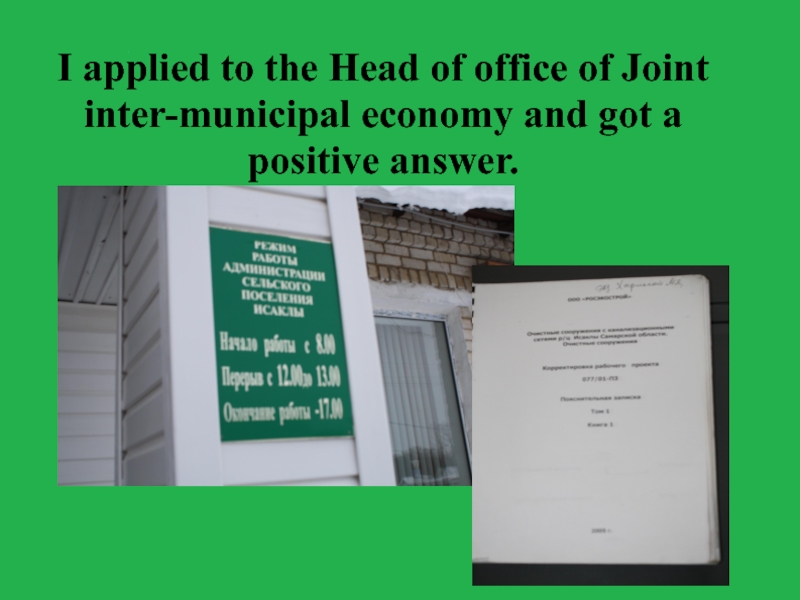 Слайд 14I applied to the Head of office of Joint inter-municipal economy