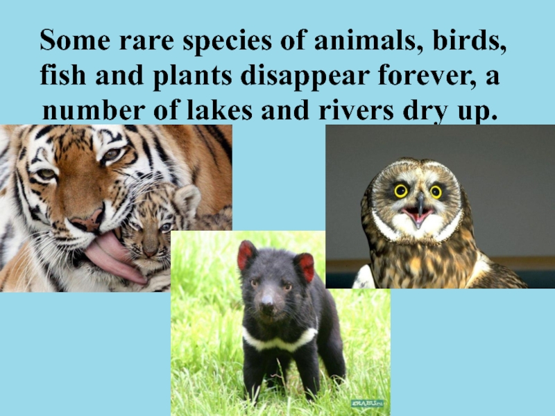 Some rare species of animals, birds, fish and plants disappear forever, a number of lakes and