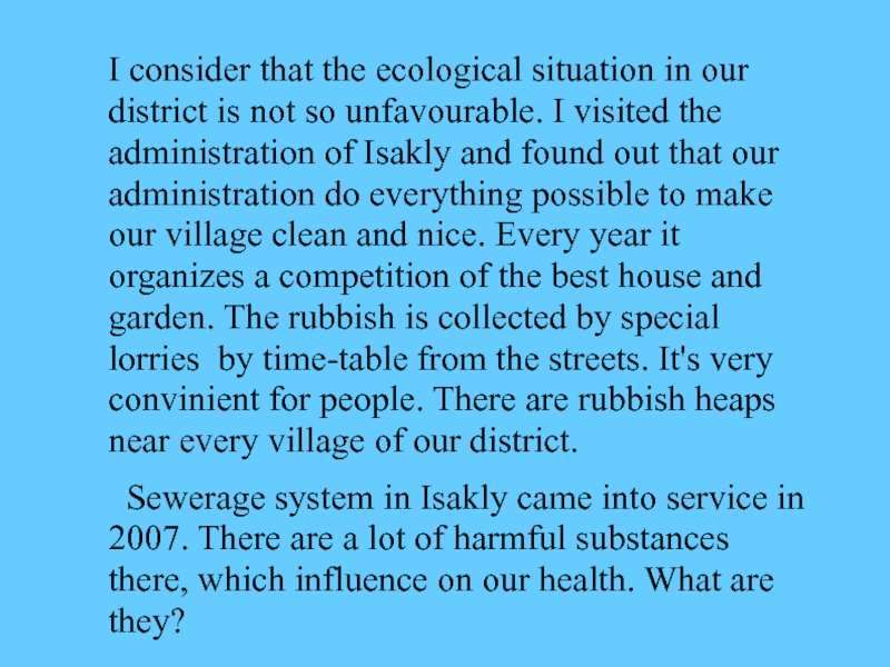 Слайд 12I consider that the ecological situation in our district is not