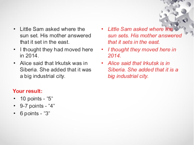Little Sam asked where the sun sets. His mother answered that it sets in the east.