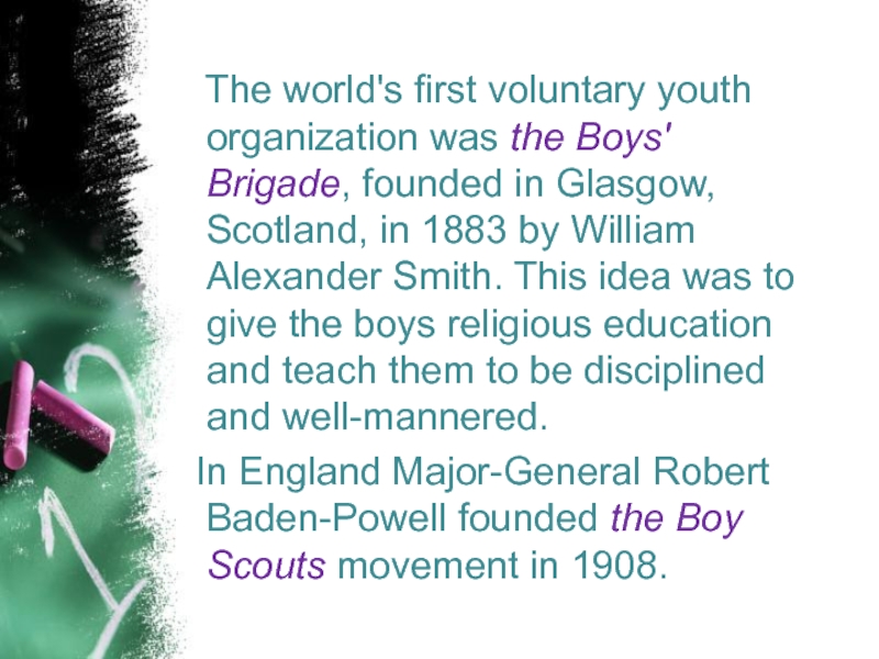 Слайд 3 The world's first voluntary youth organization was the Boys'