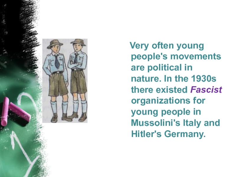 in nature. In the 1930s there existed Fascist organizations for young people in Mussolini's Italy and Hitler's Germany.
