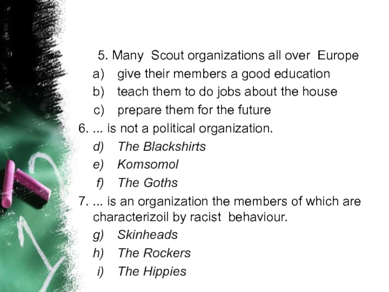 5. Many Scout organizations all over Europegive their members a good educationteach them to do jobs about