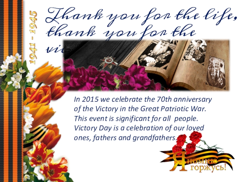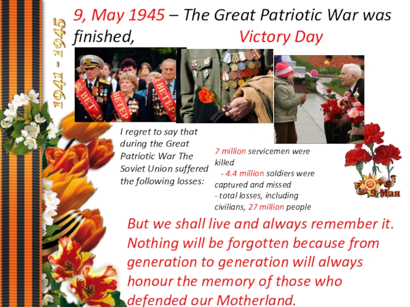 But we shall live and always remember it. Nothing will be forgotten because from generation to generation will always honour the memory of those who defended our Motherland.