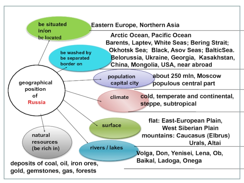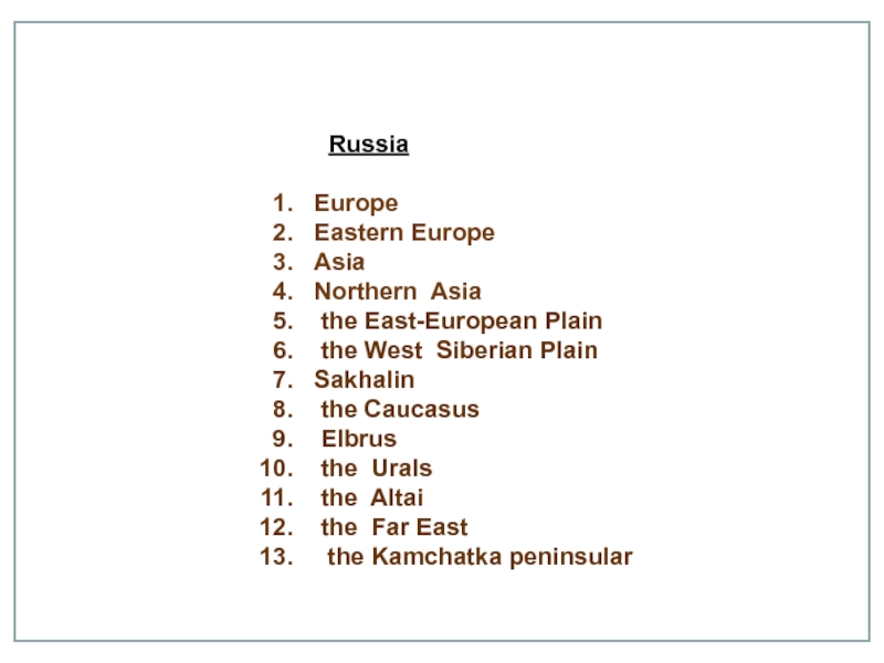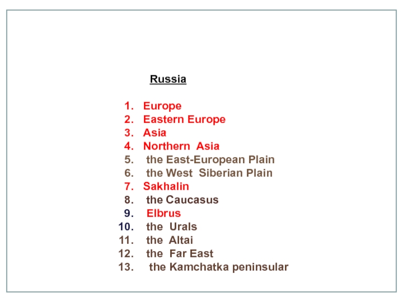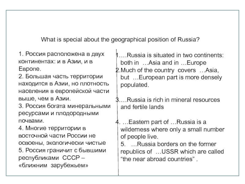 1. Россия расположена в двух континентах: и в Азии, и в Европе.