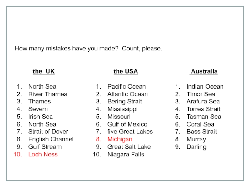 Okhotsk Sea; Black, Asov Seas; BaltiсSea.