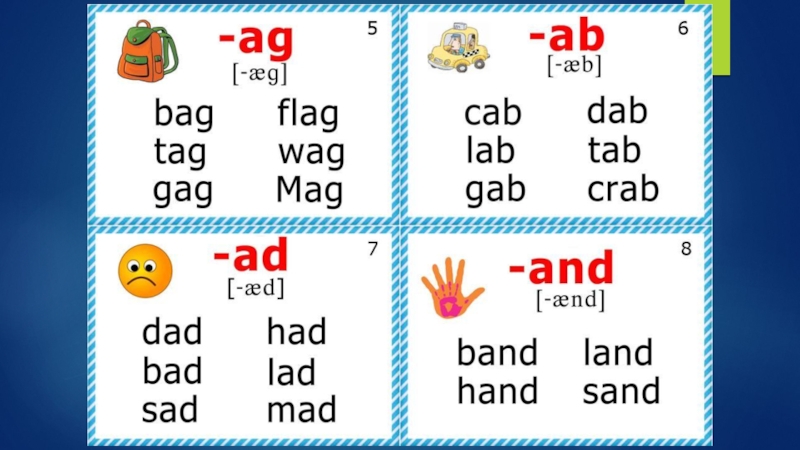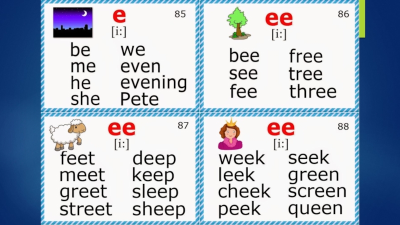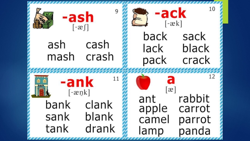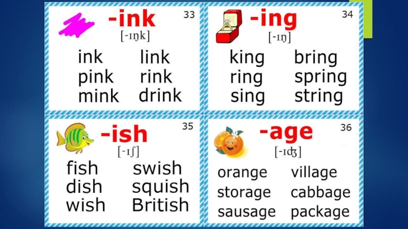 Презентация по английскому языку для закрепления транскрипции: Phonics cards Английский язык