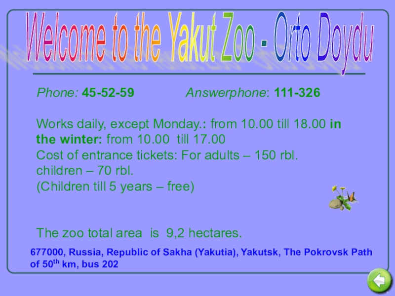Cost of entrance tickets: For adults – 150 rbl. children – 70 rbl.