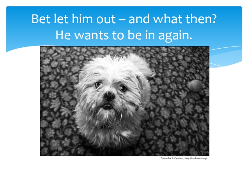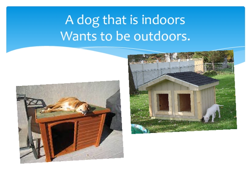 Слайд 5A dog that is indoors Wants to be outdoors.