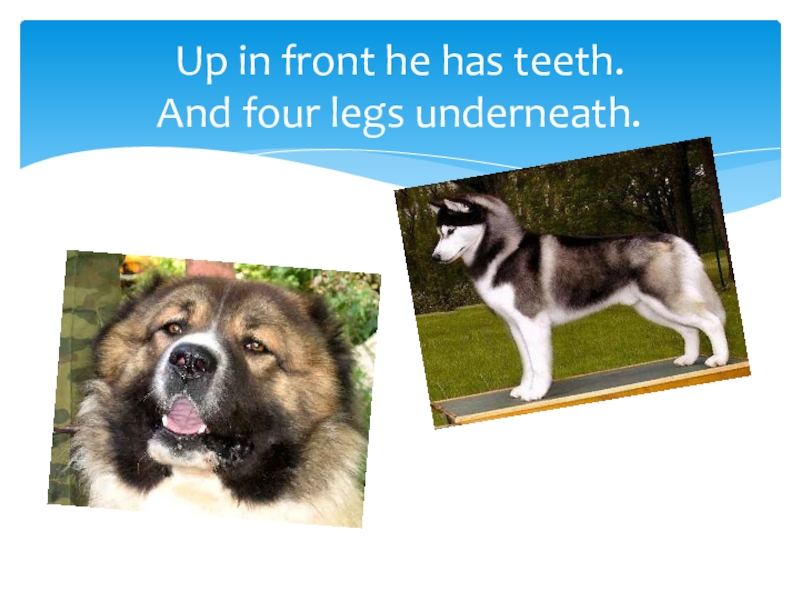 Слайд 3Up in front he has teeth. And four legs underneath.