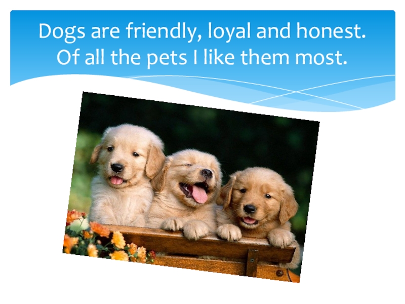 Слайд 10Dogs are friendly, loyal and honest. Of all the pets I like