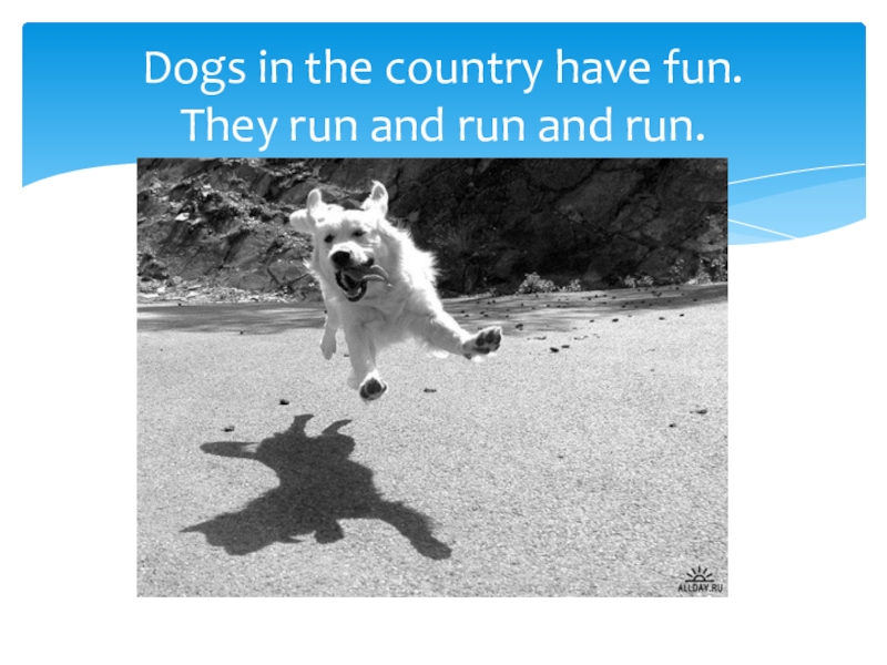 Слайд 8Dogs in the country have fun. They run and run and run.