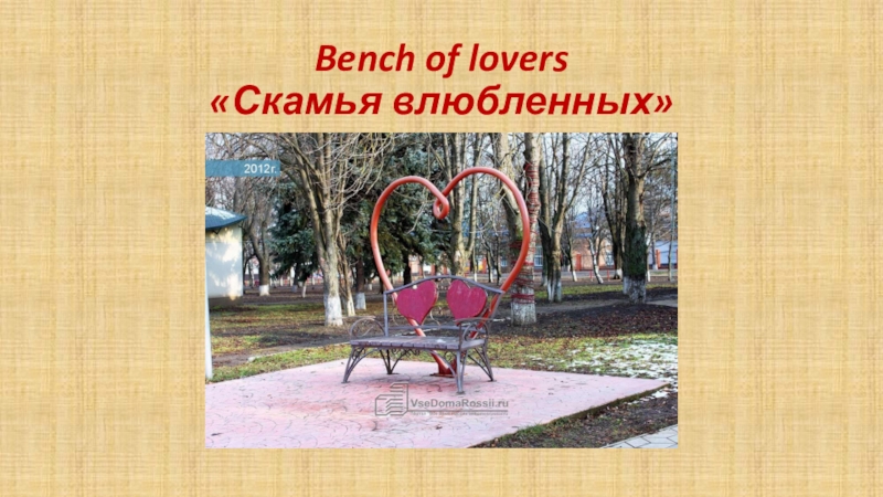 Слайд 8Bench of lovers «Скамья влюбленных»