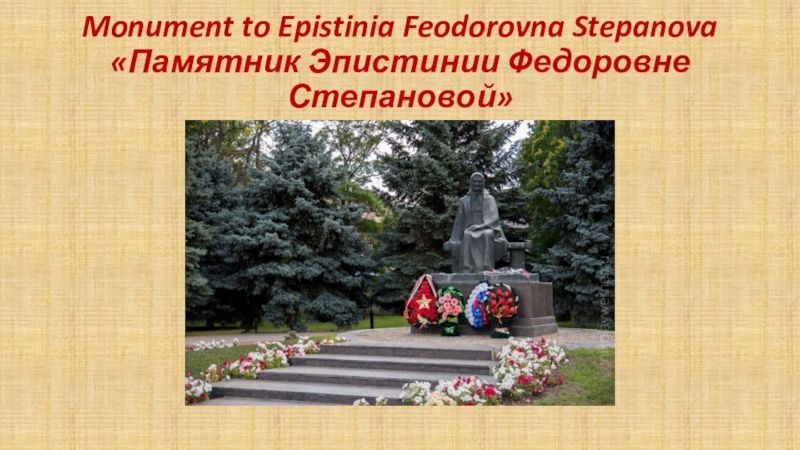 Слайд 3Monument to Epistinia Feodorovna Stepanova «Памятник Эпистинии Федоровне Степановой»