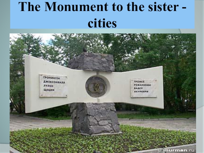 Слайд 30The Monument to the sister - cities
