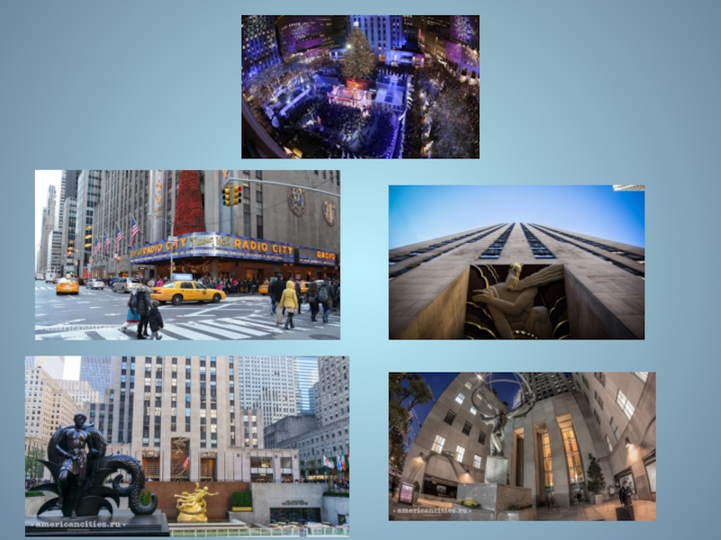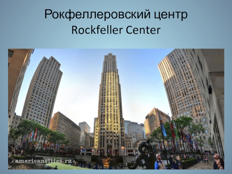Слайд 55Рокфеллеровский центр - огромный комплекс зданий в Мидатауне Манхеттена. В состав