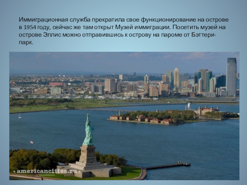 Слайд 30Иммиграционная служба прекратила свое функционирование на острове в 1954 году, сейчас