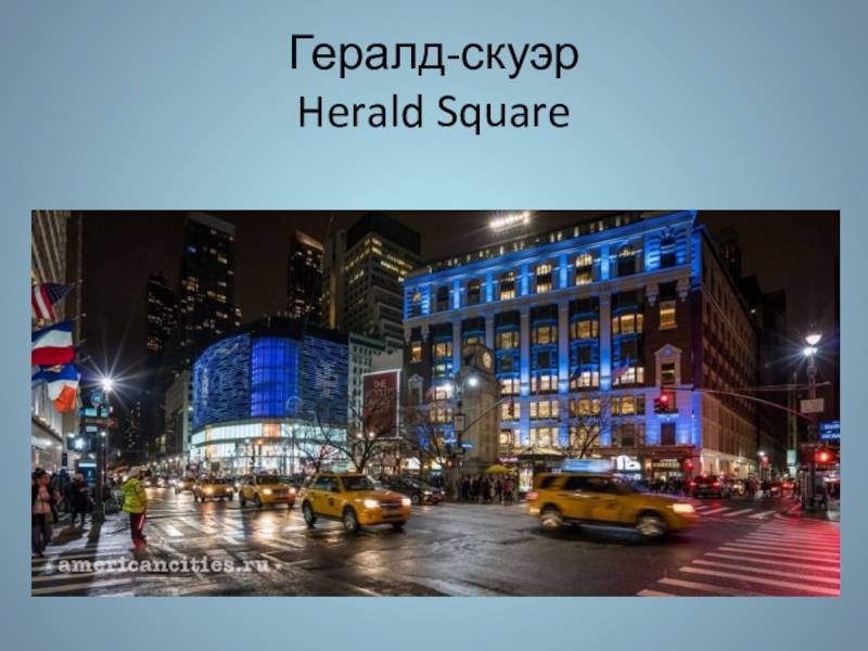 Слайд 44Геральд-скуэр (Herald Square) - оживленная площадь с прилегающей территорией, на месте