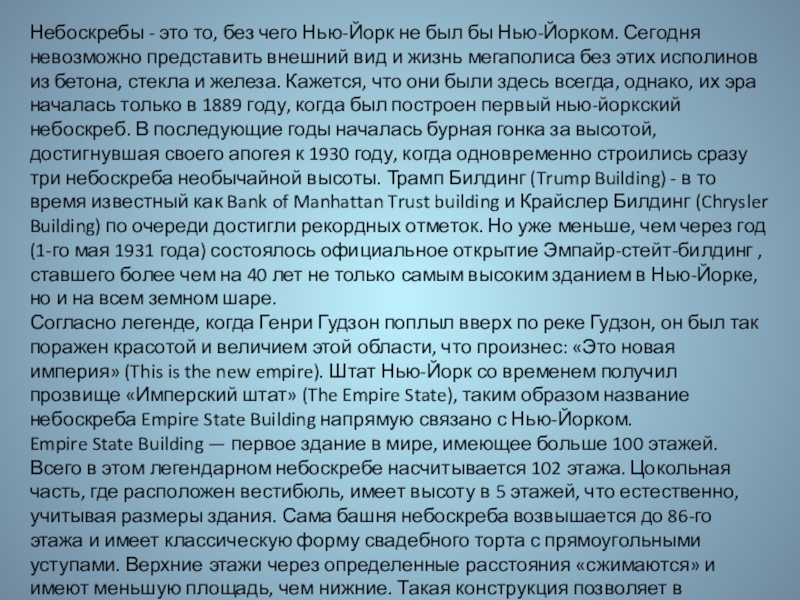 Слайд 46Небоскребы - это то, без чего Нью-Йорк не был бы Нью-Йорком.