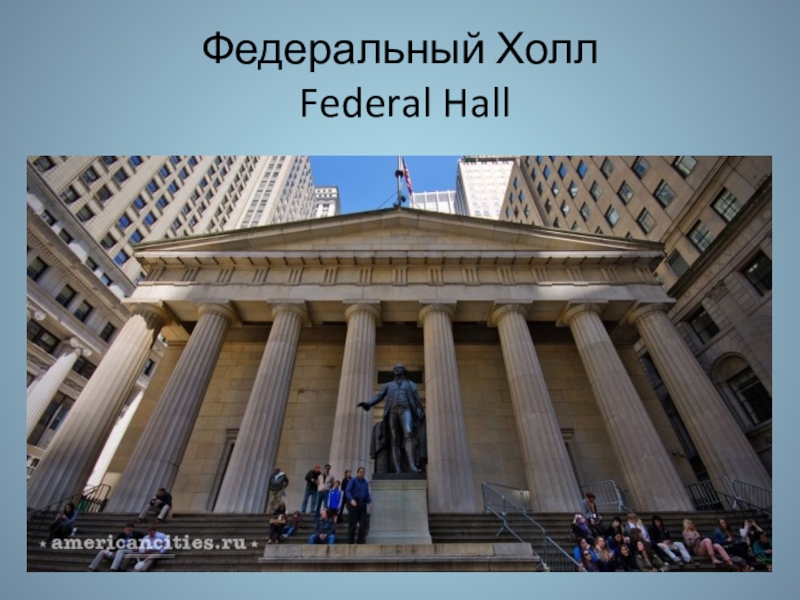 Слайд 19Федеральный Холл (Federal Hall) расположен в самом центре финансового района (Financial