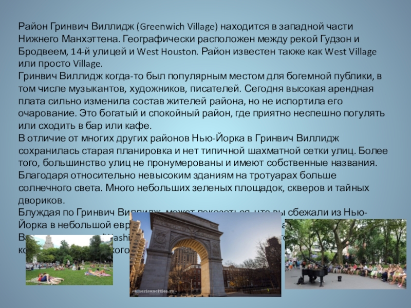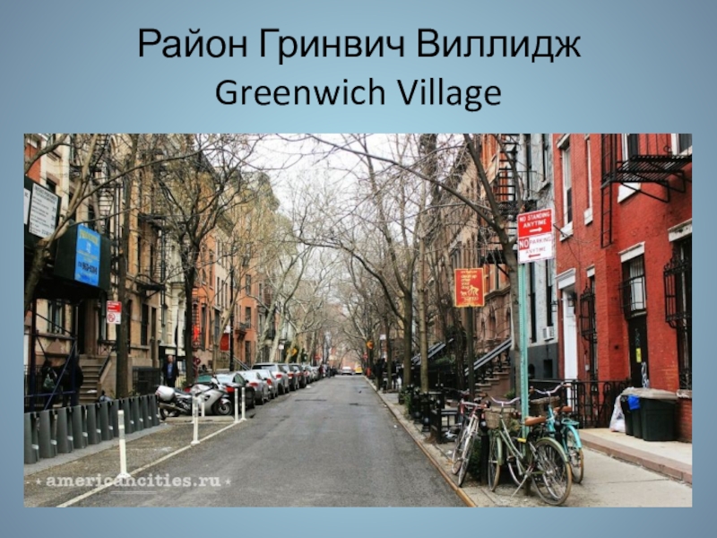 Слайд 25Район Гринвич Виллидж (Greenwich Village) находится в западной части Нижнего Манхэттена.