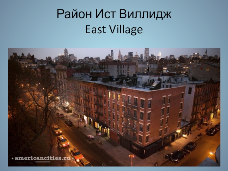 Слайд 27Ист Виллидж ( East Village , «Восточная деревня») - район Манхэттена,