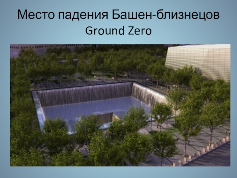 Слайд 12Место падения Башен-близнецов Ground Zero