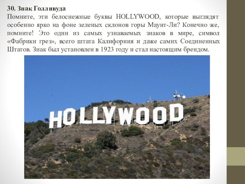 Слайд 3130. Знак Голливуда