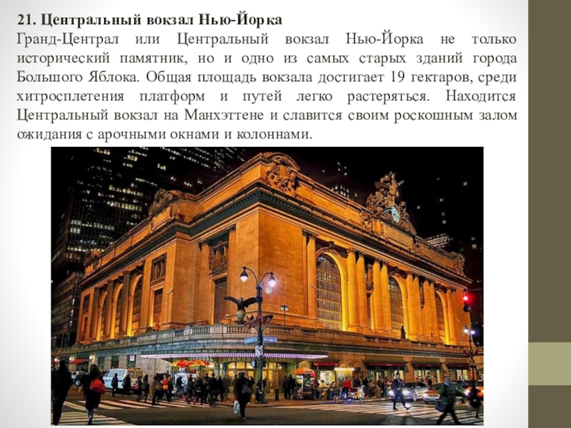 Слайд 2221. Центральный вокзал Нью-Йорка
