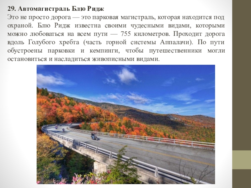 Слайд 3029. Автомагистраль Блю Ридж