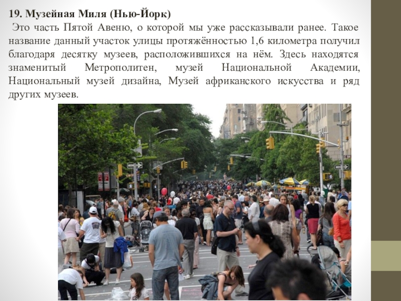 Слайд 2019. Музейная Миля (Нью-Йорк)