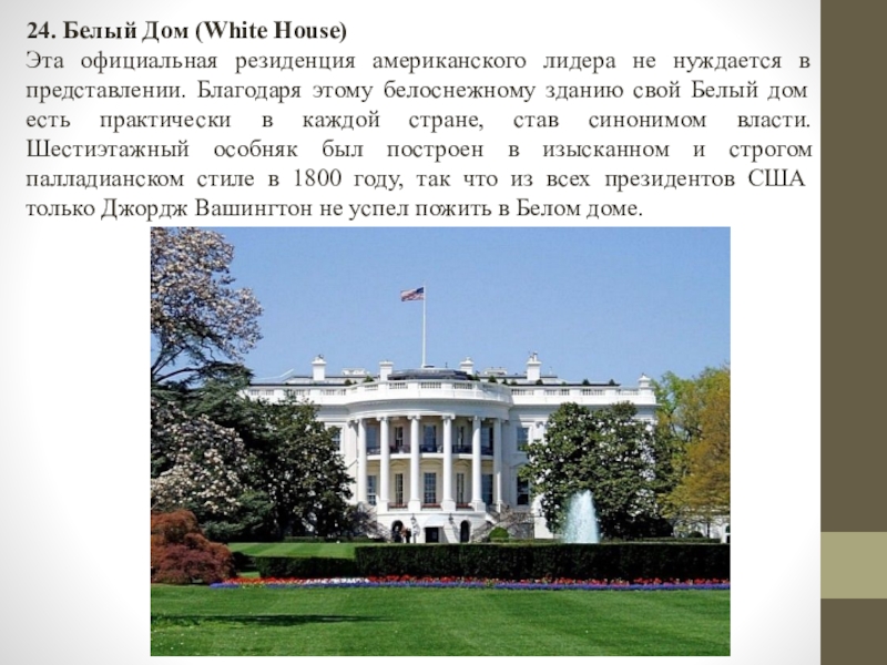 Слайд 2524. Белый Дом (White House)
