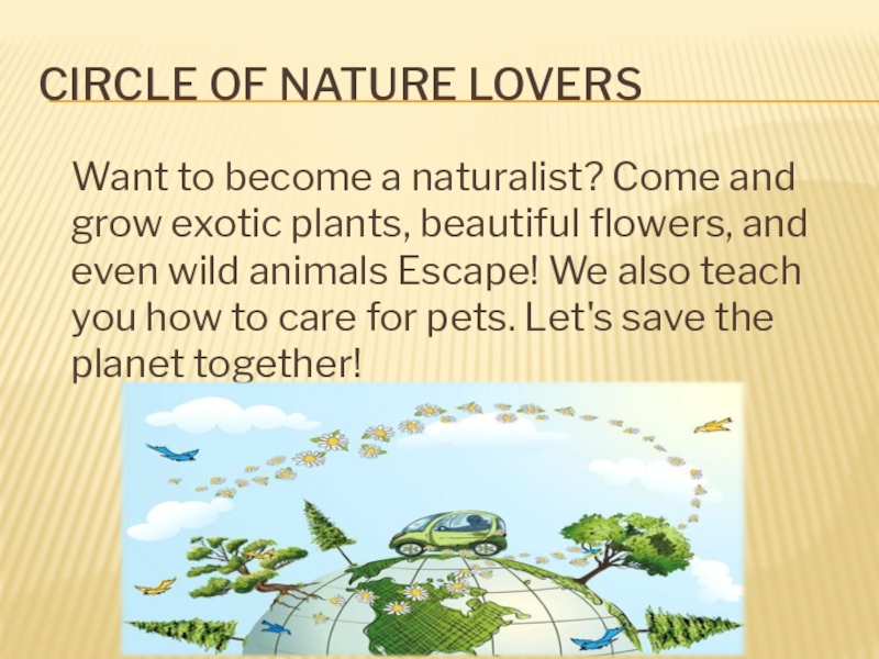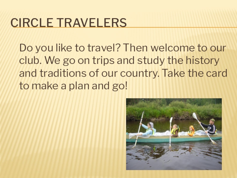 our club. We go on trips and study the history and traditions of our country. Take the card to make a plan and go!