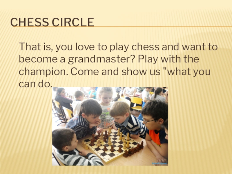 want to become a grandmaster? Play with the champion. Come and show us "what you can do.