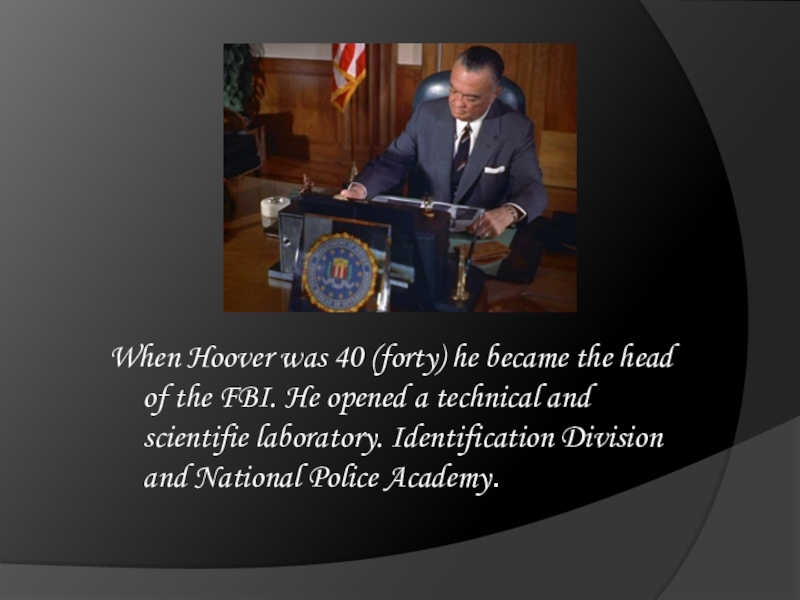 When Hoover was 40 (forty) he became the head of the FBI. He opened a technical and