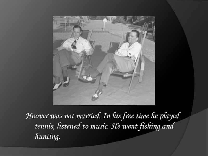 Слайд 7Hoover was not married. In his free time he played tennis,