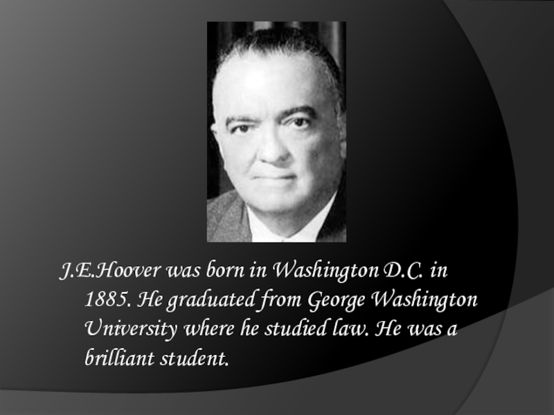 Слайд 2J.E.Hoover was born in Washington D.C. in 1885. He graduated from