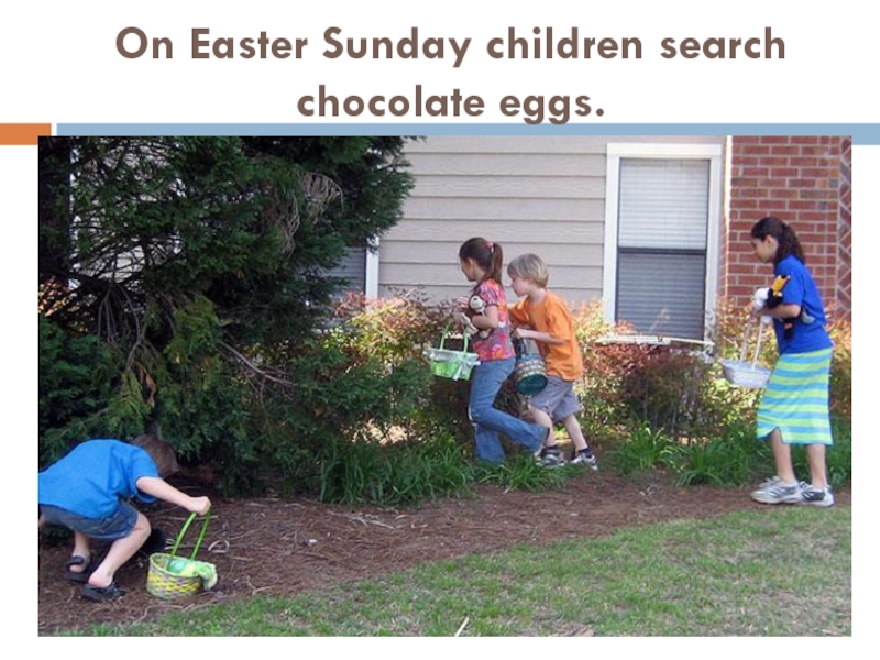 Слайд 7On Easter Sunday children search chocolate eggs.