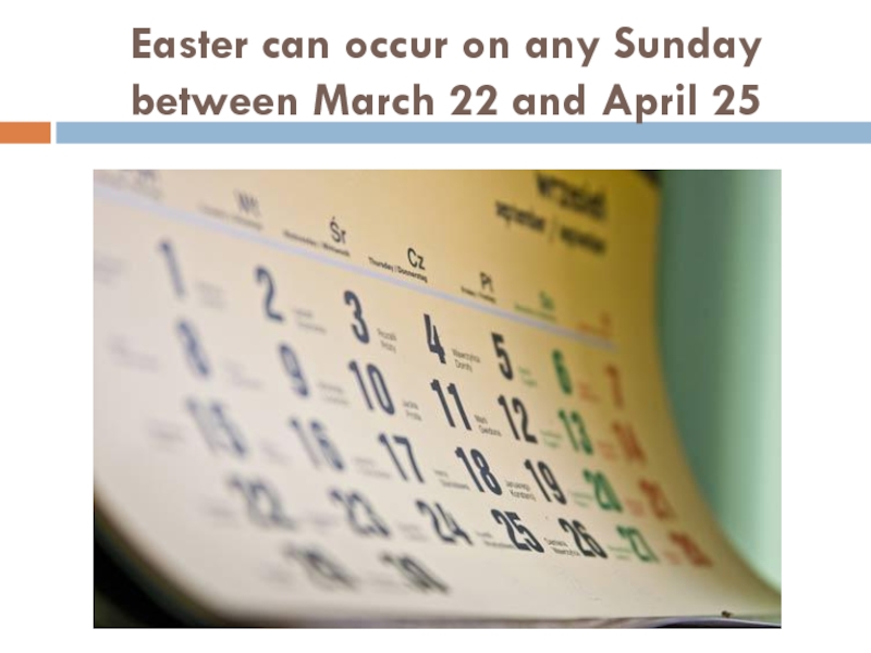 Слайд 4Easter can occur on any Sunday between March 22 and April