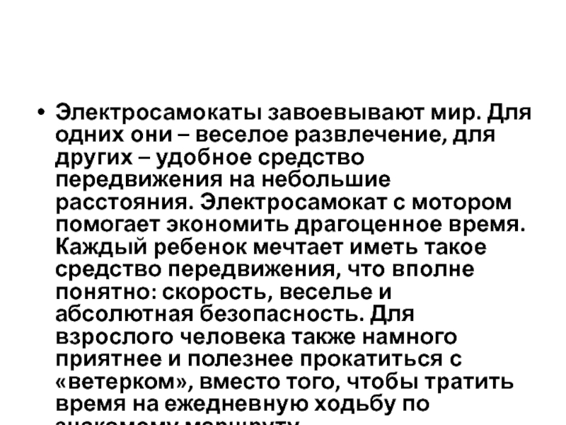 Слайд 13Электросамокаты завоевывают мир. Для одних они – веселое развлечение, для других