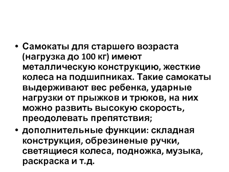 Самокаты для старшего возраста (нагрузка до 100 кг) имеют металлическую