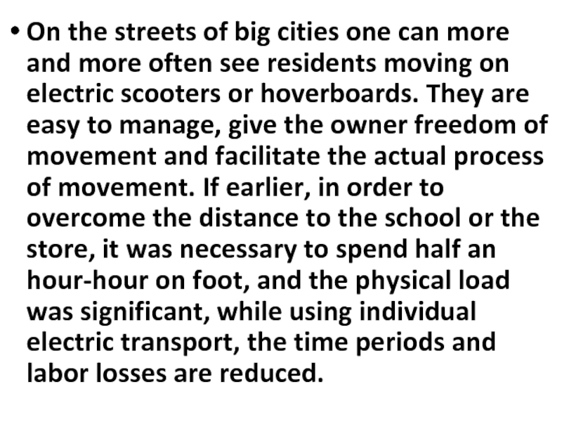 Слайд 4На улицах больших городов можно все чаще увидеть жителей, перемещающихся на