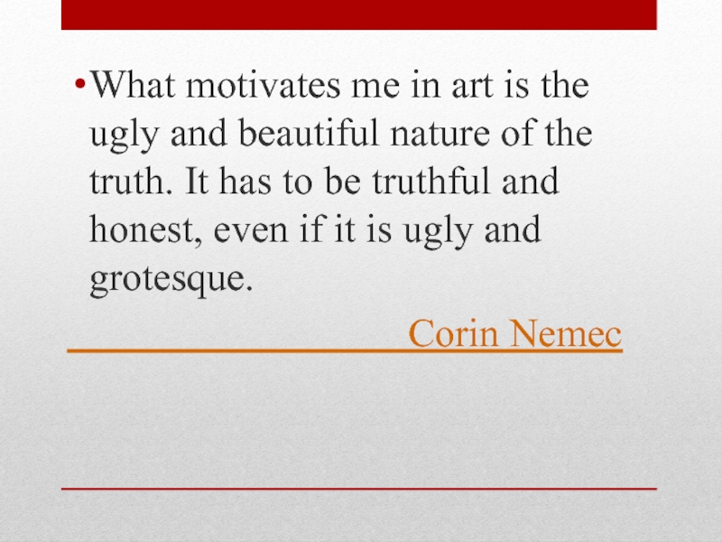 Слайд 8What motivates me in art is the ugly and beautiful nature