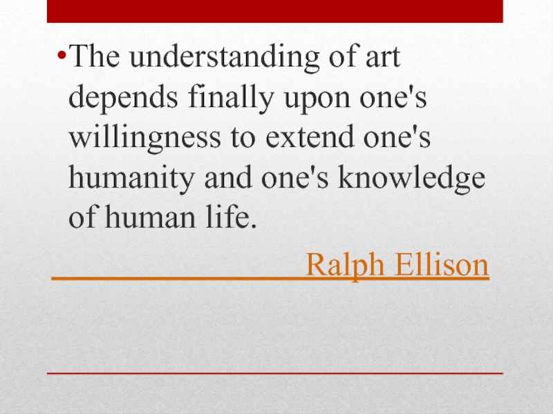 Слайд 7The understanding of art depends finally upon one's willingness to extend